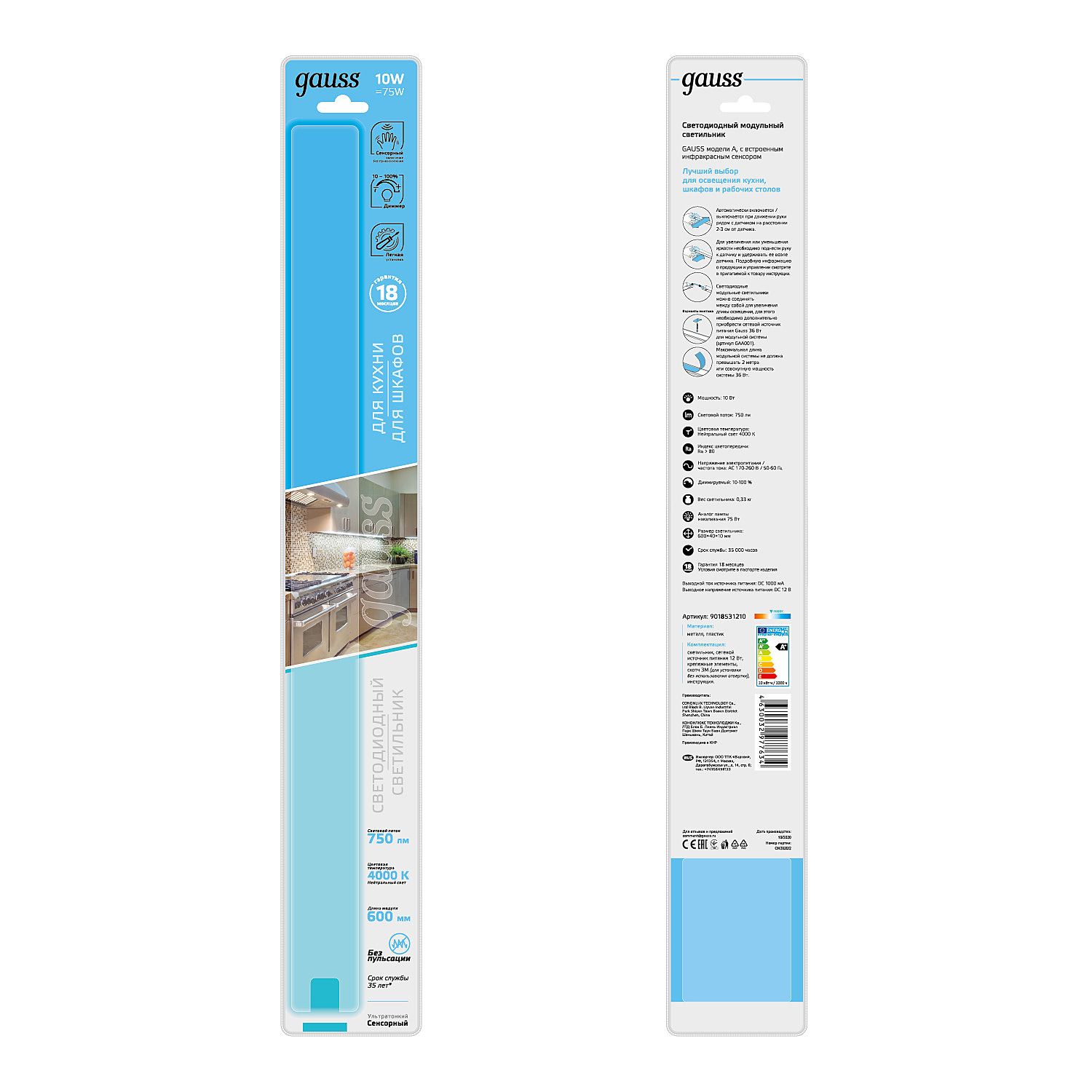 Мебельный светильник Gauss Sensor 9018531210