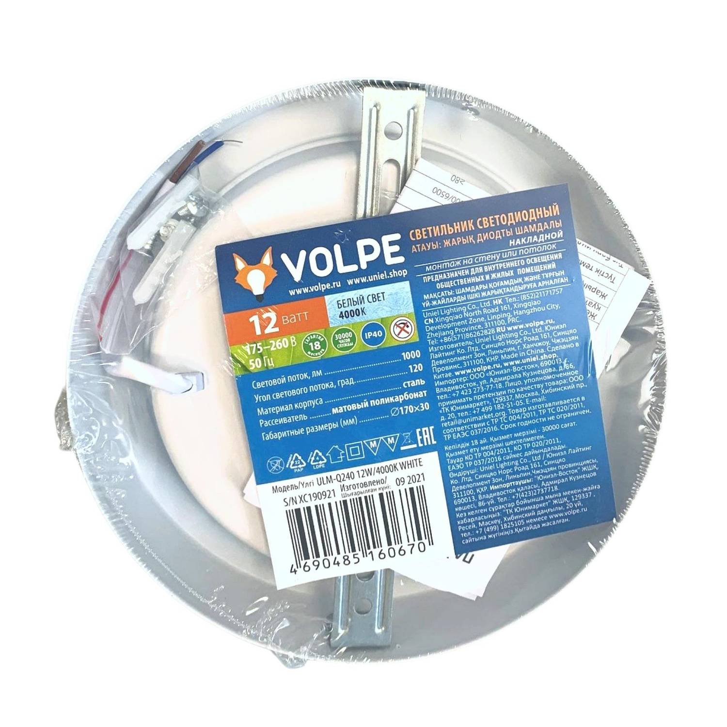 Накладной светильник Volpe Ulm-q240 ULM-Q240 12W/4000K WHITE