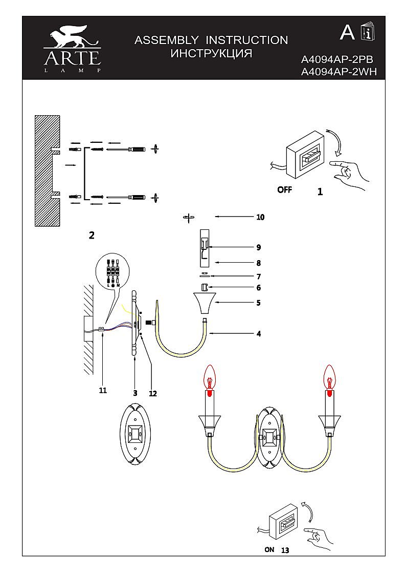 Настенное бра Arte Lamp Collinetta A4094AP-2WH