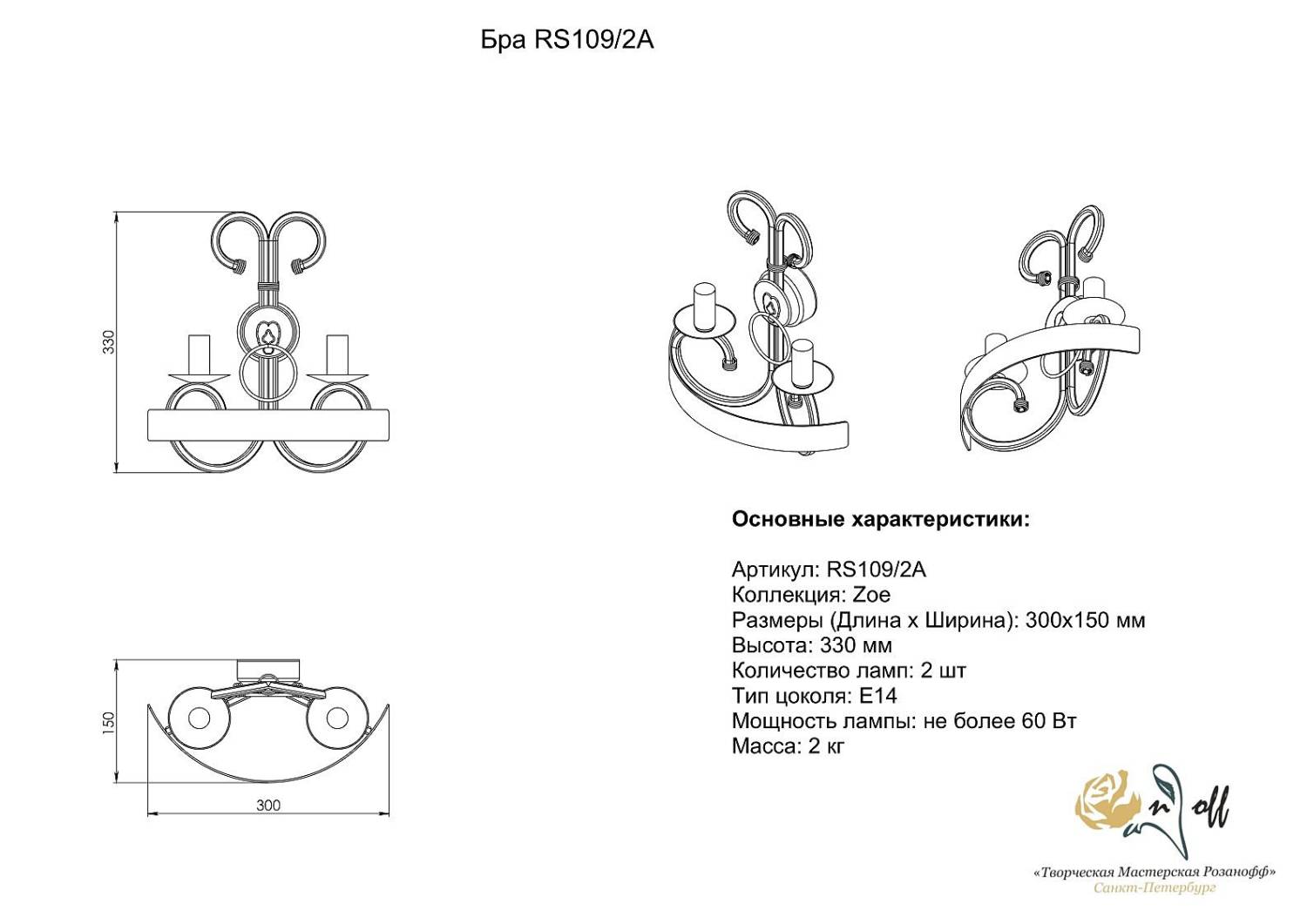 Настенное бра Розанофф Zoe RS109/2A