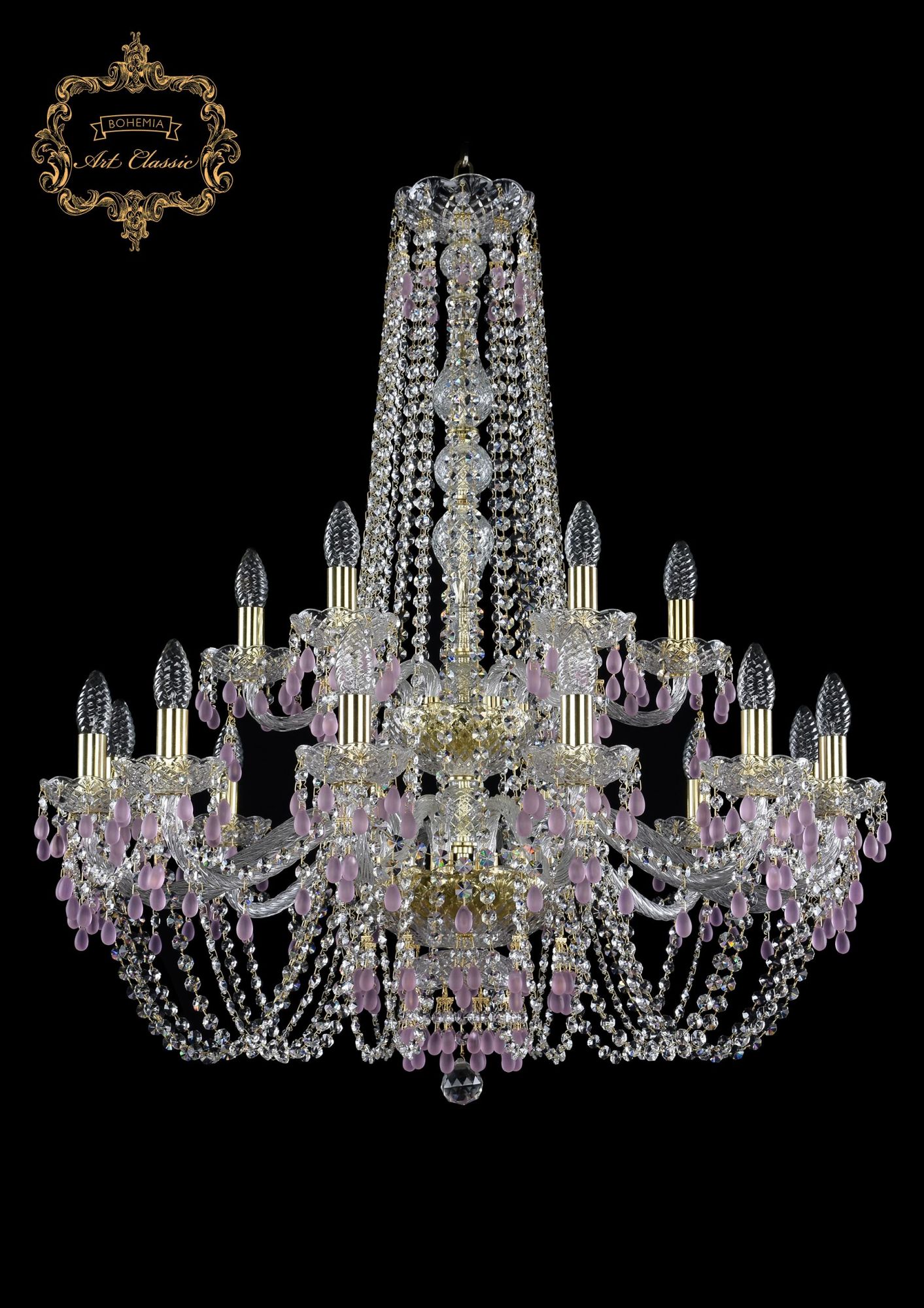 Подвесная хрустальная люстра 11.24 Art Classic 11.24.12+6.300.2d.h-92.Gd.V7010