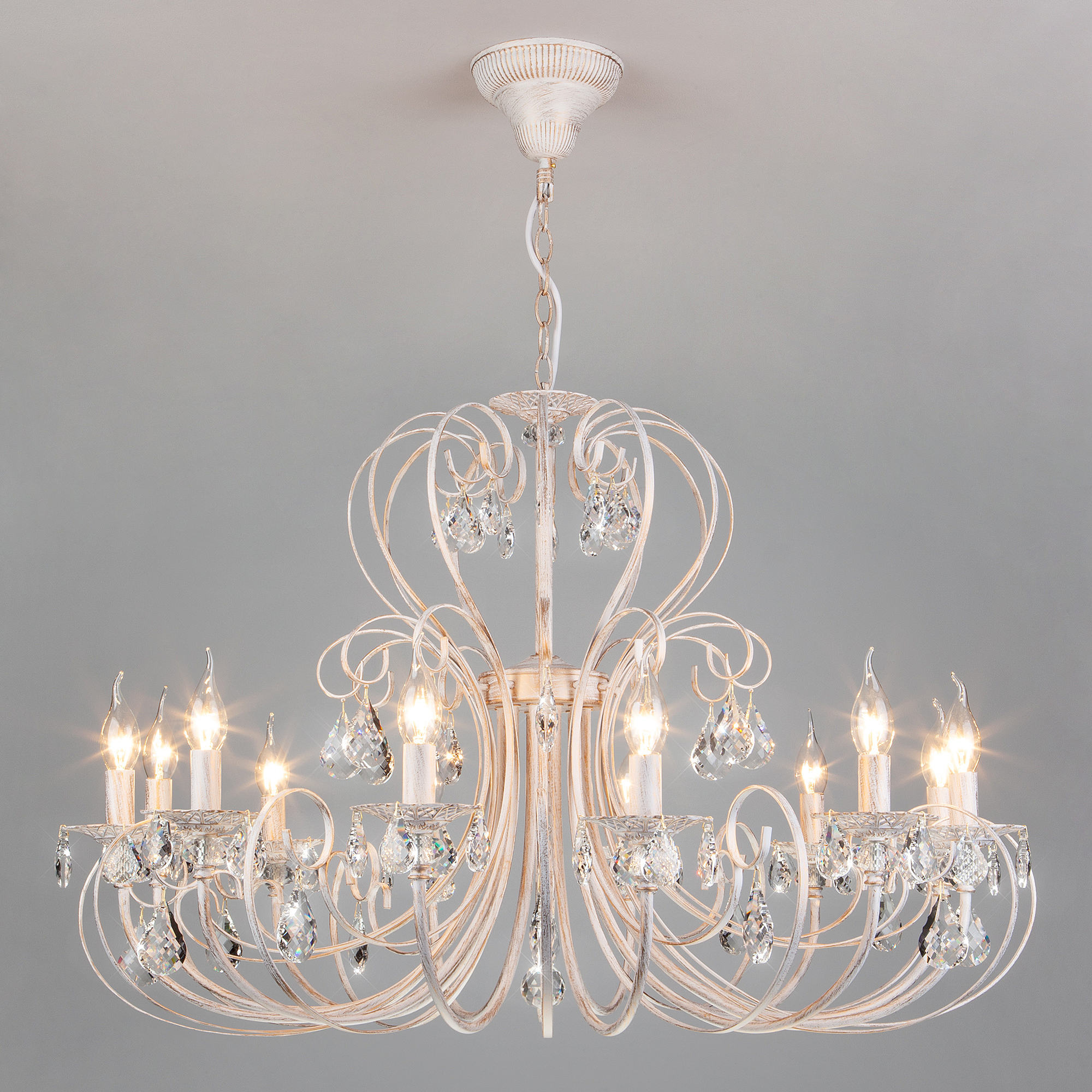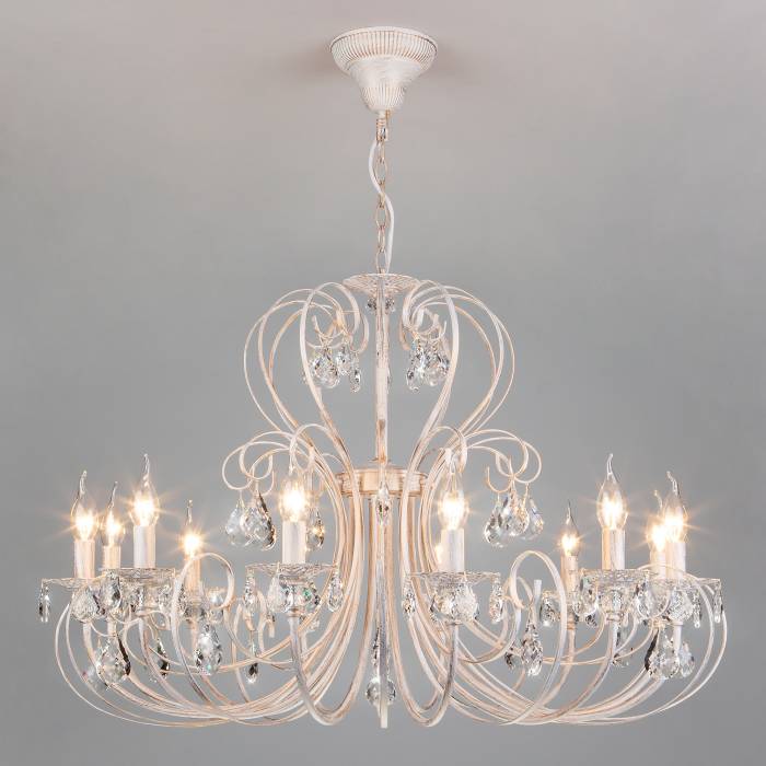 Подвесная люстра Eurosvet Alda 3305/12 белый с золотом/прозрачный хрусталь Strotskis