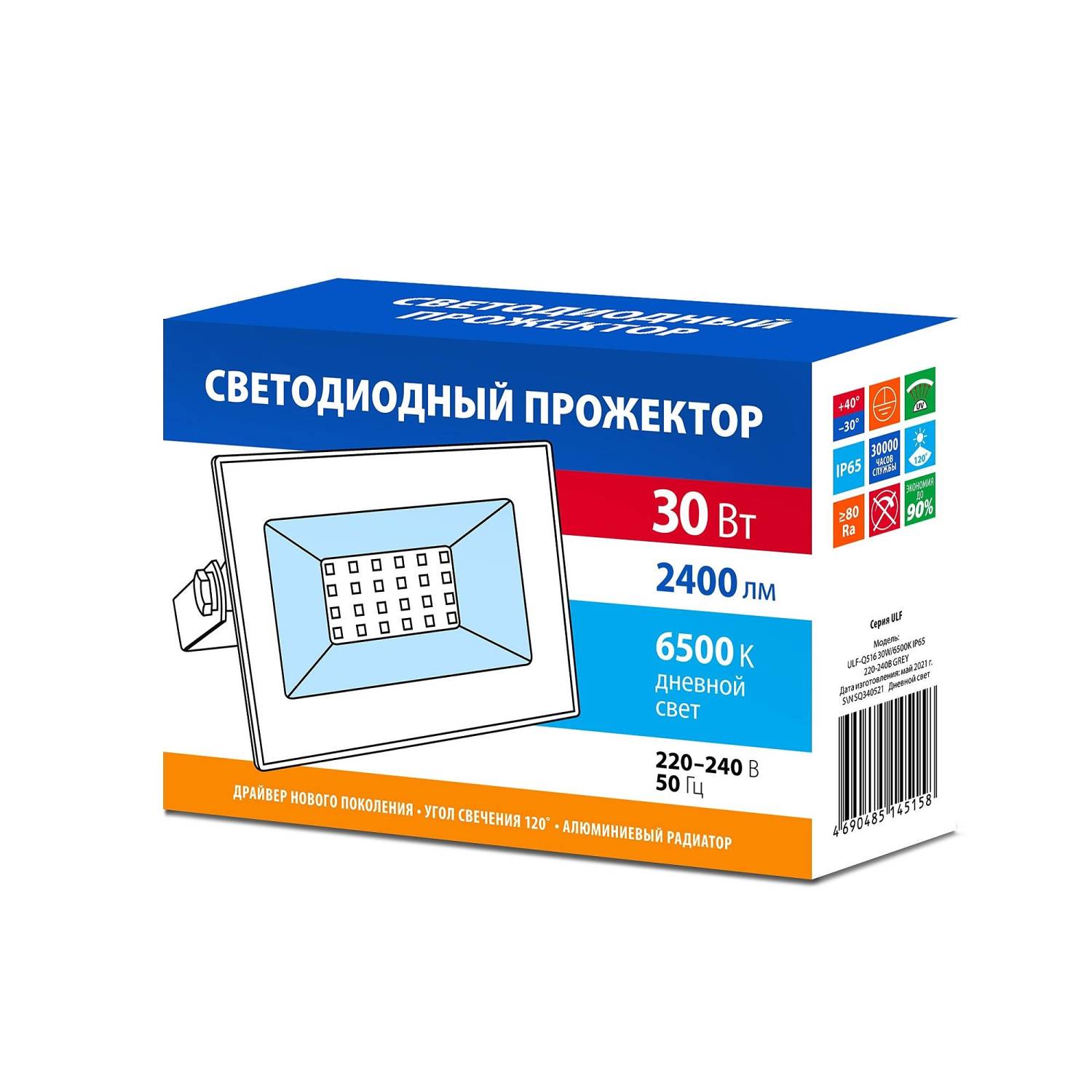 Прожектор уличный Volpe ULF-Q516 30W/6500K IP65 220-240В GREY картон