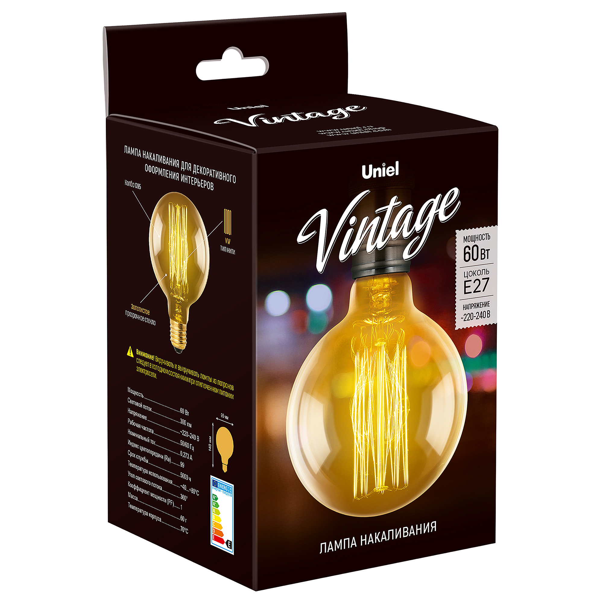 Ретро лампа Uniel Vintage серия Лампы накаливания IL-V-G95-60/GOLDEN/E27 VW01