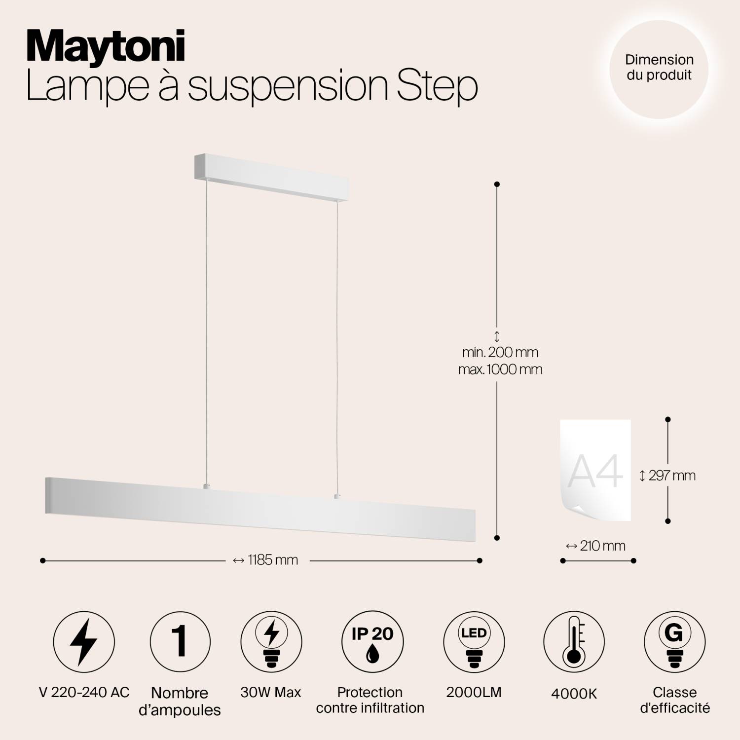 Светильник подвесной Maytoni Step P010PL-L30W4K