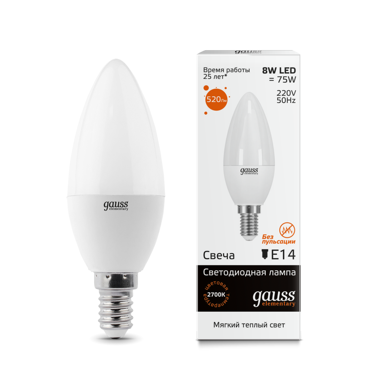 Светодиодные лампочки Gauss 33118 (E14) (8Вт) (3000K)