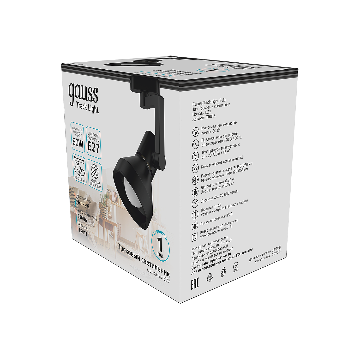 Трековый светильник Gauss Track TR013