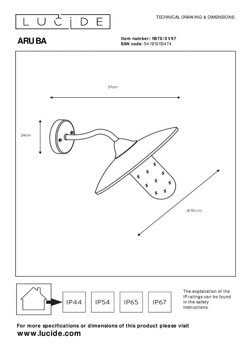 Уличный настенный светильник Lucide Aruba 11870/01/97