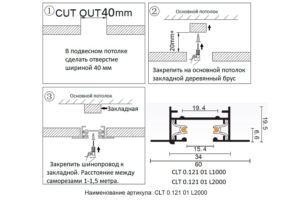 Встраиваемый шинопровод Crystal Lux Clt 0.121 CLT 0.121 01 L2000 BL