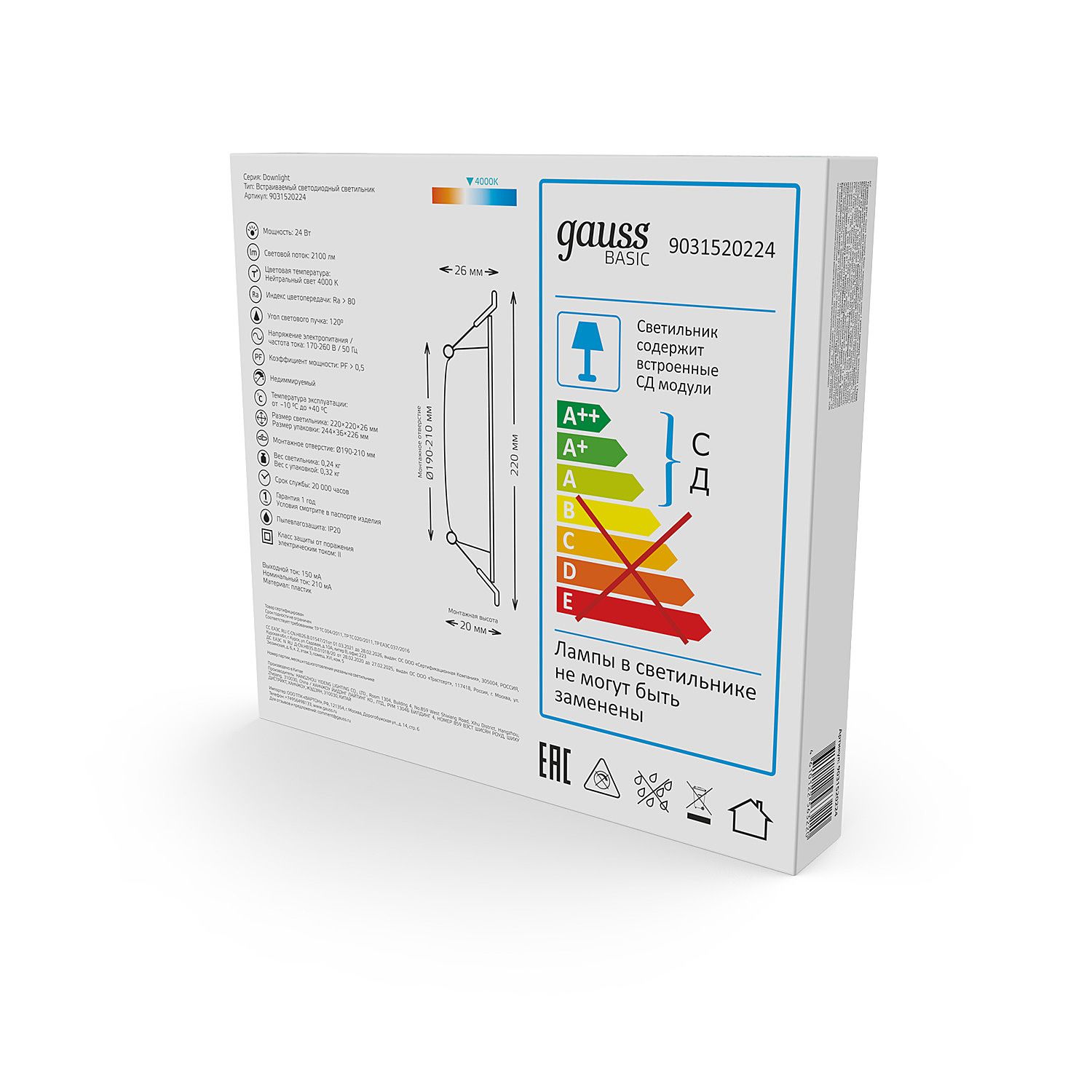 Встраиваемый светильник Gauss 9031520224