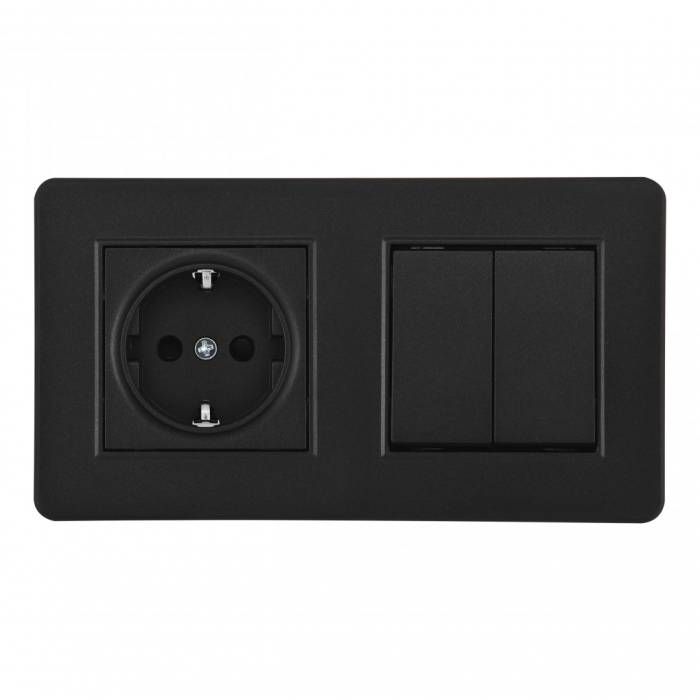 Выключатель двухклавишный с розеткой с заземлением и шторками Arte Milano Set16-2 SET16-2-40-1-30-2 black