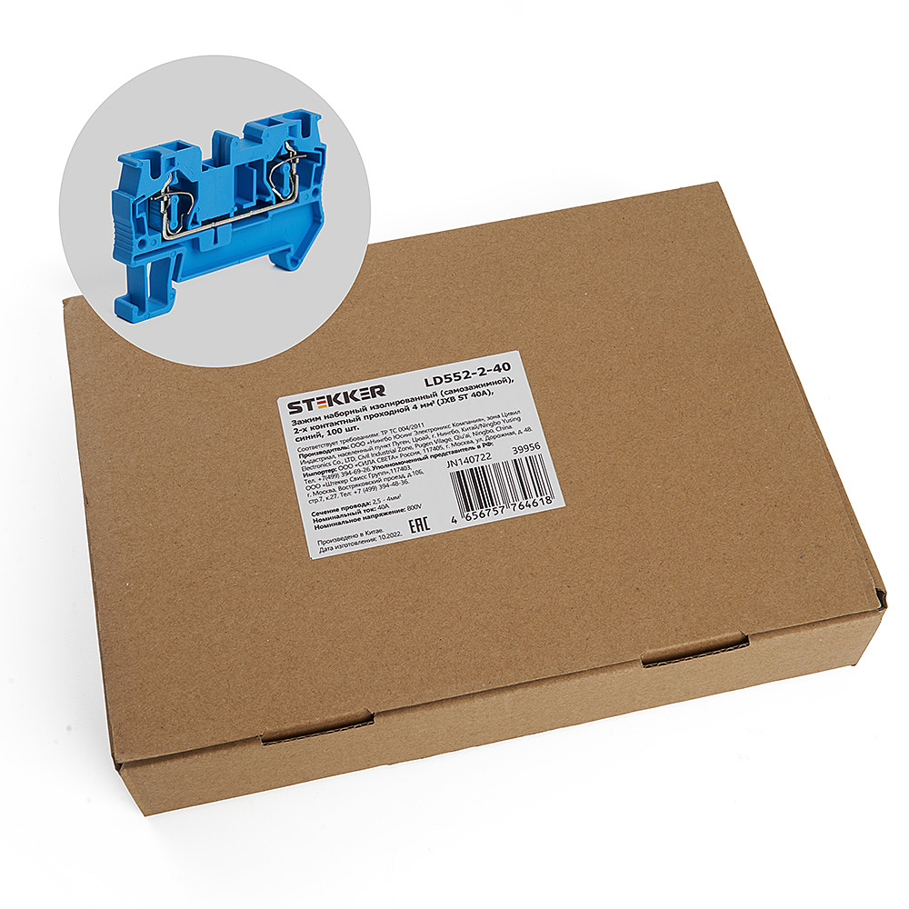 Зажим самозажимной, 2-проводной проходной 4,0 ммStekker LD552-2-40 39956